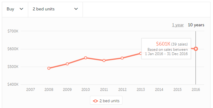 去年,Newstead的两套卧室公寓的售价中值为58.9万澳元,与5年前同期相比,2个卧室的单元销售价格上涨了9.1%。