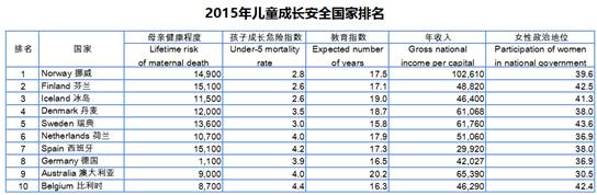 “Save the Children世界援助儿童协会”出具的2105年报告中,在177个国家中,澳大利亚从2000年有记录开始到2015年的16年里面,一直是儿童成长最舒适最安全、母亲最满意前10的国家。澳大利亚也是自2000年首次公布报告以来一直排名前十位的三个国家之一,其他两个国家是挪威和瑞典(非移民国家)。